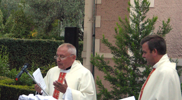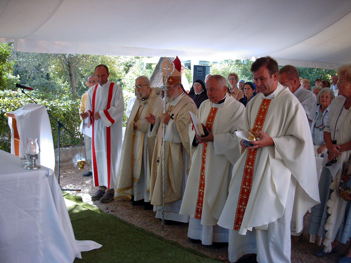 Patronatsfest am 19. September 2004 Bild links: Festgottesdienst mit S.E. Erzbischof Nikolaos Foscolos Bilder oben: Gäste im Garten des Gemeindezentrums - In der Mitte Monsignore Hans Brabeck Alle Fotos: Guido Ankner