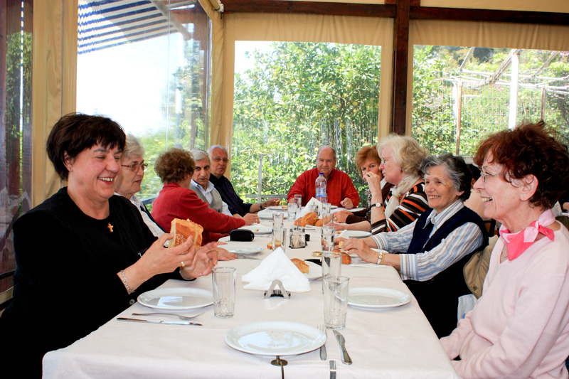 Zum Schluss der Osteroktav, am Samstag, dem 25. April, unternahm eine Gruppe von 44 Mitgliedern und Freunden unserer Pfarrei einen österlichen Ausflug in die nähere Umgebung Athens. Unser erstes Ziel war der kleine Hafen Pachi, drei Kilometer südlich von Megara. In alten Zeiten hieß dieser Hafenort Nissaia. Der berühmteste Bürger Megaras war ein gewisser Byzas, der legendäre Gründer von Byzanz. In diesem historischen Umfeld nahmen wir in einer schönen Fischtaverne ein köstliches Mittagsmahl mit frischen Fischen direkt aus dem nahe gelegenen Meer ein.