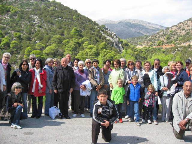 Nach Besichtigung und Wanderung freuten sich alle, unter ihnen auch eine Schar von Kindern, auf das Mittagessen in einer volkstümlichen Taverne in Ligourio. Nach den wohlschmeckenden und reichlichen Speisen suchten wir die in der Nähe liegende byzantinische Kirche des hl. Johannes des Barmherzigen aus dem 11. Jhd. auf. Sie ist das älteste Bauwerk der Gegend, ein Beispiel ausgezeichneter Baukunst mit einem achteckigen Kuppeldach, das sich auf zwei Säulen und auf die Mauern des Altars stützt.