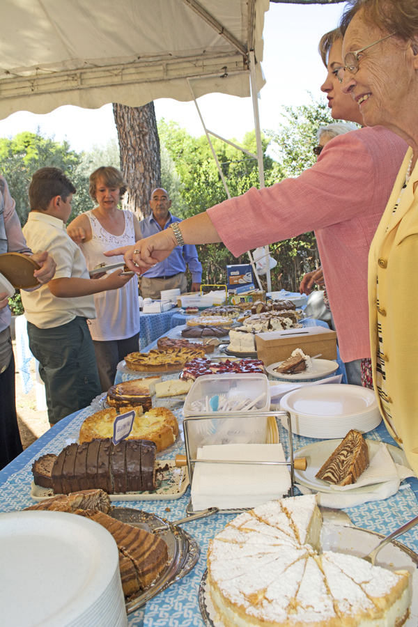 | Nach dem Pontifikalamt beim gemütlichen Beisammensein | Am Tisch der Ehrengäste | Am Kuchenstand |