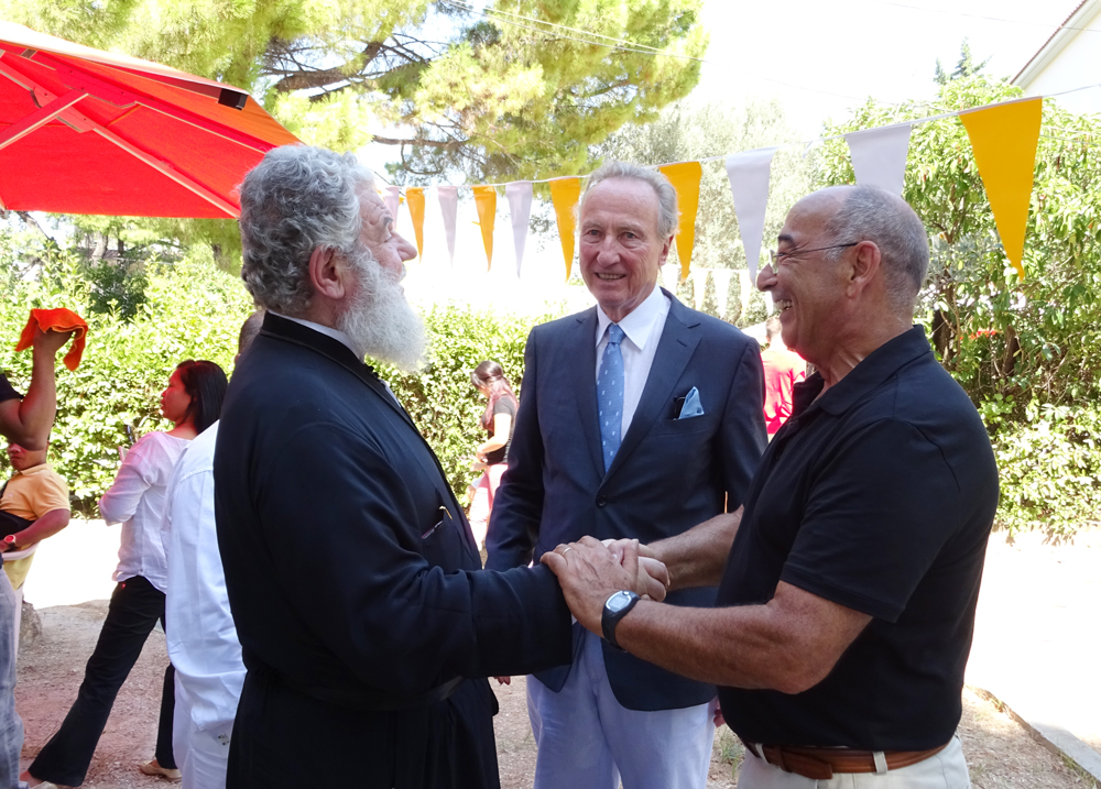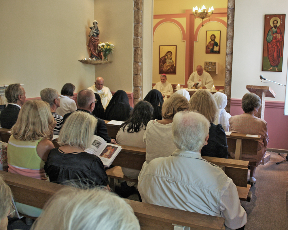 Unser Pfarrer begrüßte zu Beginn der heiligen Liturgie den Apostolischen Nuntius Erzbischof Edward J. Adams, den Hauptzelebranten und Festprediger Erzbischof Sebastianos Rossolatos, das Oberhaupt der griechischen Katholiken im byzantinischen Ritus Bischof Dimitrios Salachas und den Kanzler der Apostolischen Nuntiatur Athen Msgr. Massimo Caterrin. Wegen der verschiedenen Nationalitäten der Zelebranten wurde die Festmesse in Teilen in der Kirchensprache Latein gefeiert.