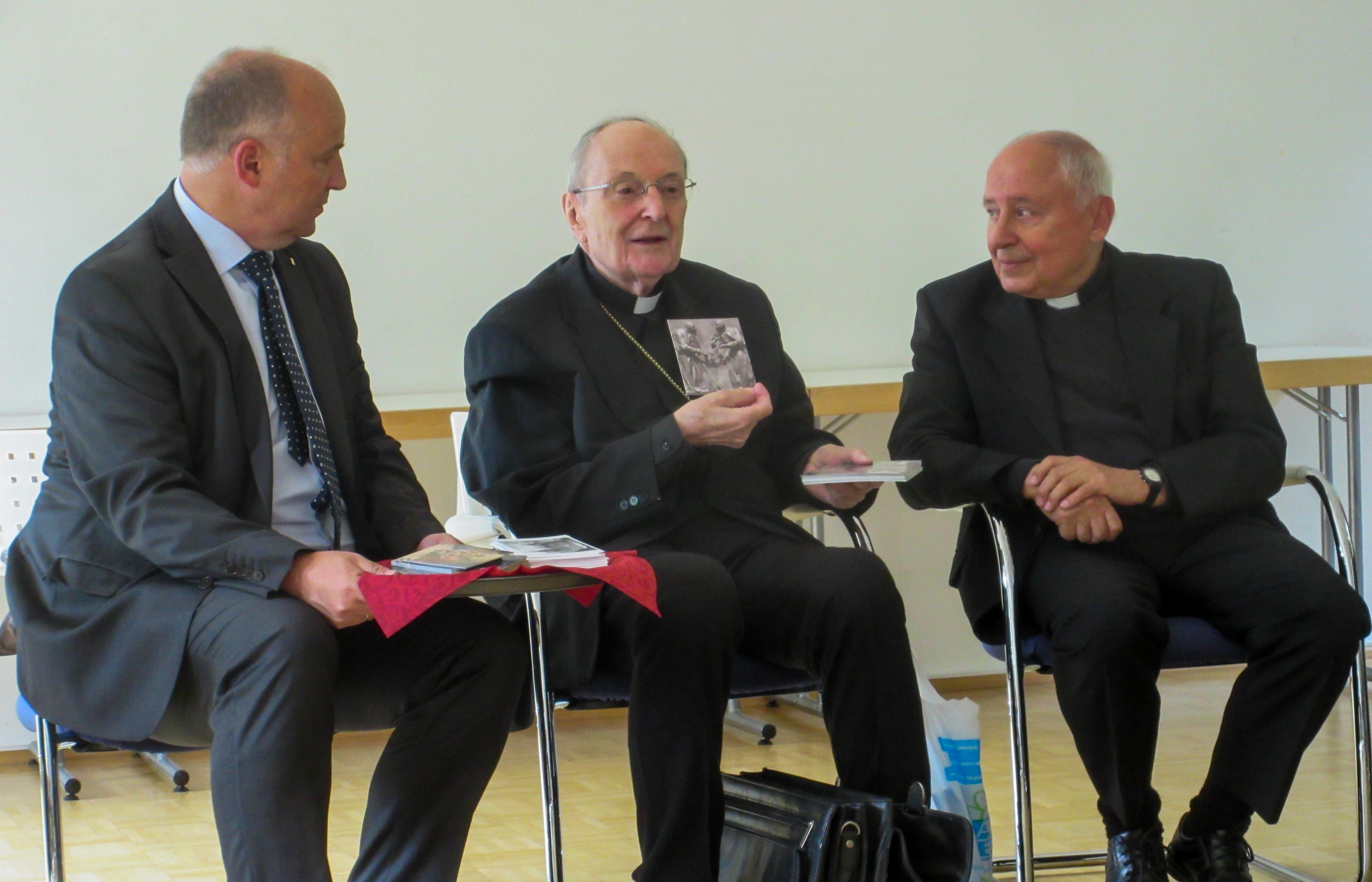 Am Beginn unserer Pilgerreise feierte S. E. Joachim Kardinal Meisner mit uns in der Hauskapelle die hl. Messe und nahm sich anschließend noch Zeit für ein Gespräch. Es war ein herzliches Wiedersehen mit dem emeritierten Erzbischof von Köln, der uns zuletzt im Dezember 2015 in Athen besucht hatte. Am Nachmittag fuhren wir in das berühmte Benediktinerkloster „Maria Laach“ mit seiner über 900 Jahre alten romanischen Kirche, in der wir an der Vesper der Mönche teilnahmen.