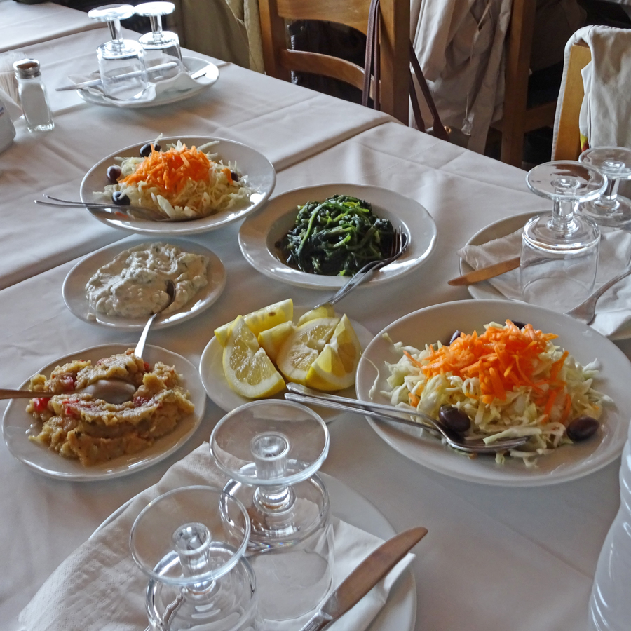 Nach dem Besuch der Kirchen, die normalerweise geschlossen sind und eigens für uns geöffnet wurden, nahmen wir in einer schönen Fischtaverne in P. Fokea am Meer das mit frischen Produkten bereitete Mittagessen ein.